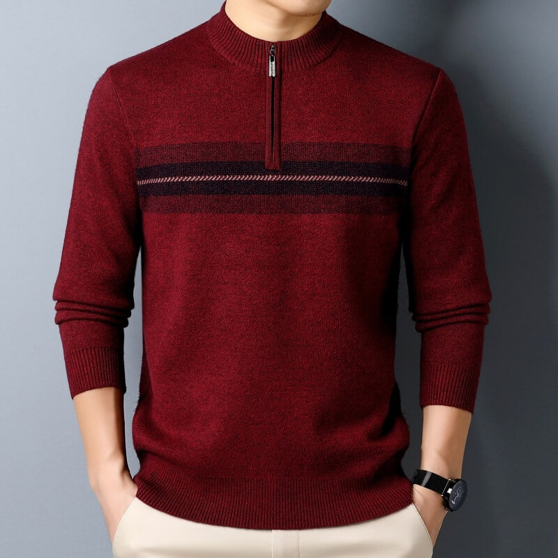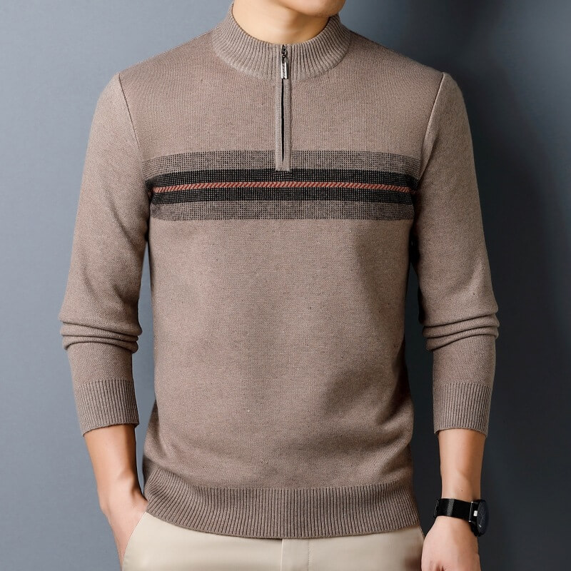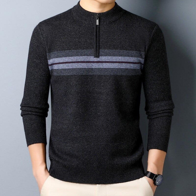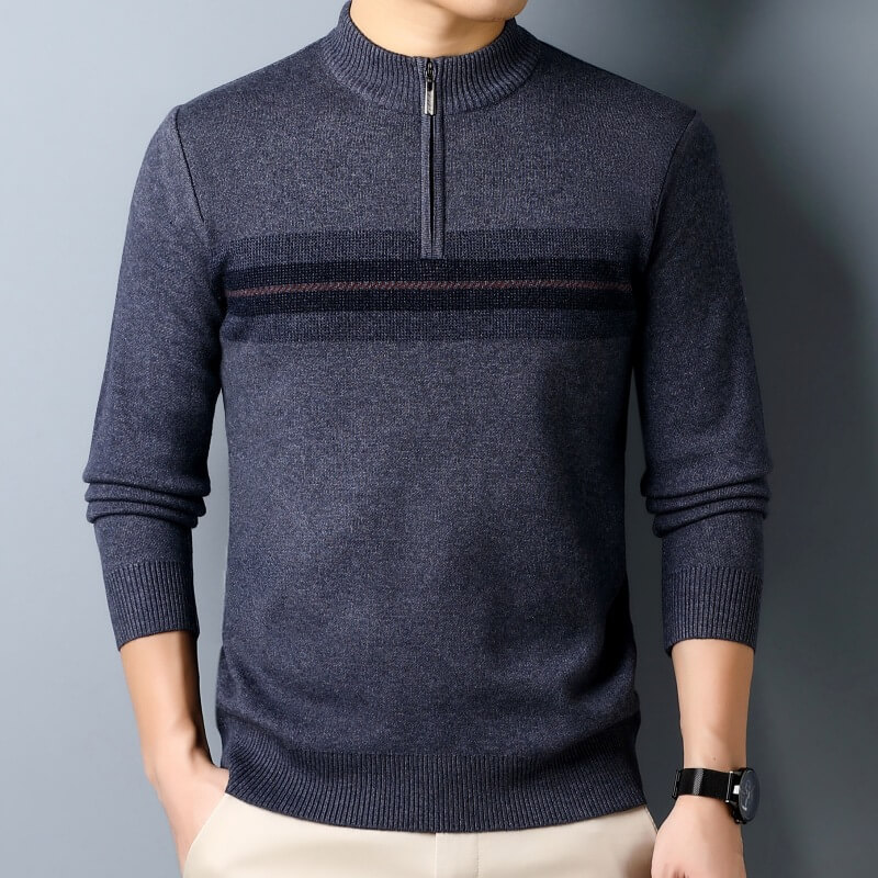 秋冬新款半高領拉鏈毛衣男士加厚打底針織衫保暖羊絨條紋毛衫