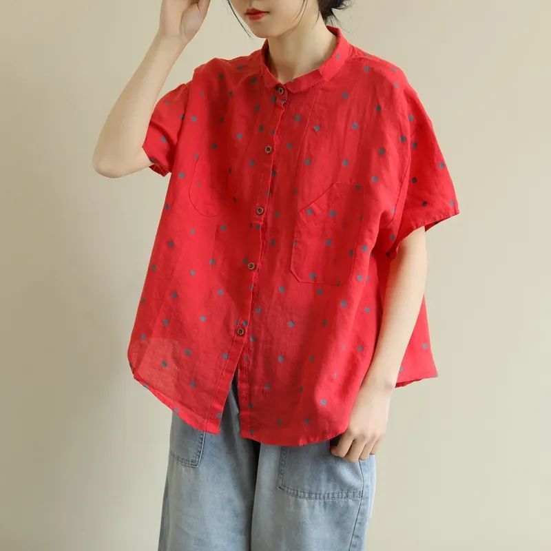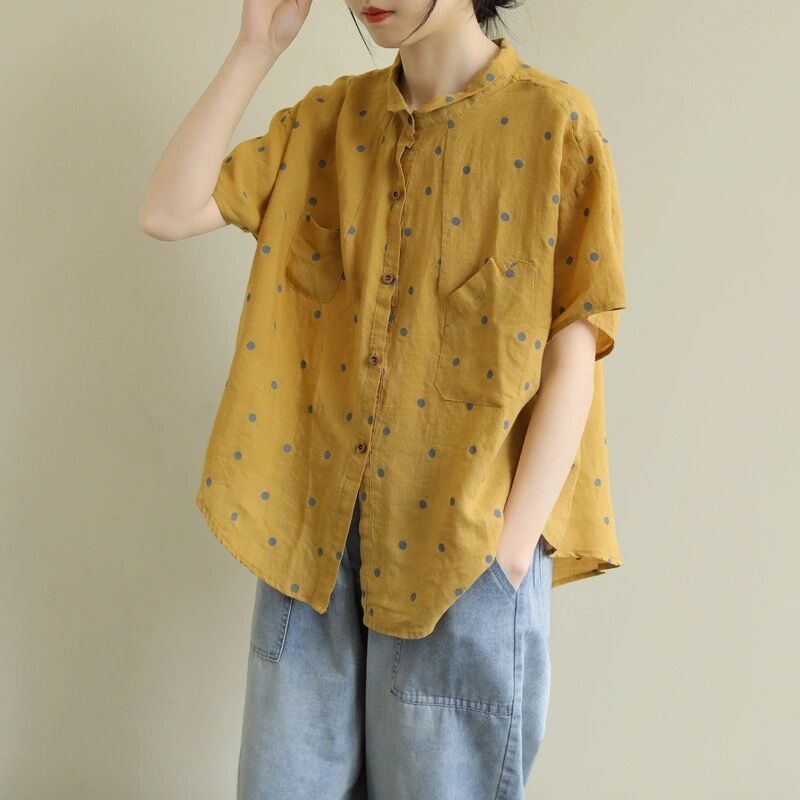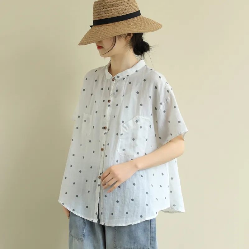 夏季文藝復古波點襯衫寬鬆休閒洋氣翻領娃娃衫減齡上衣