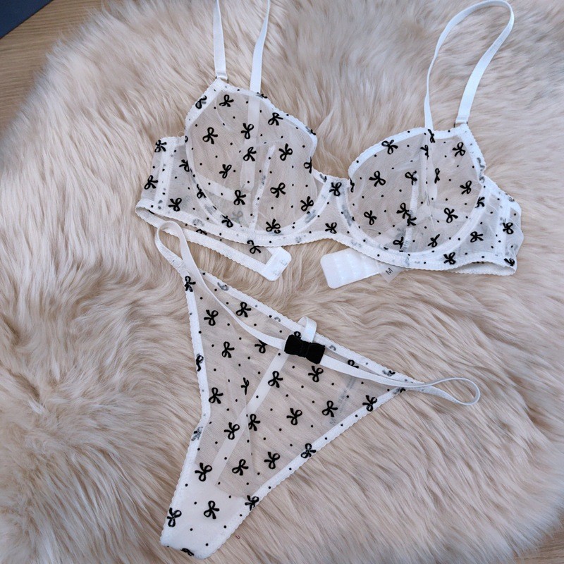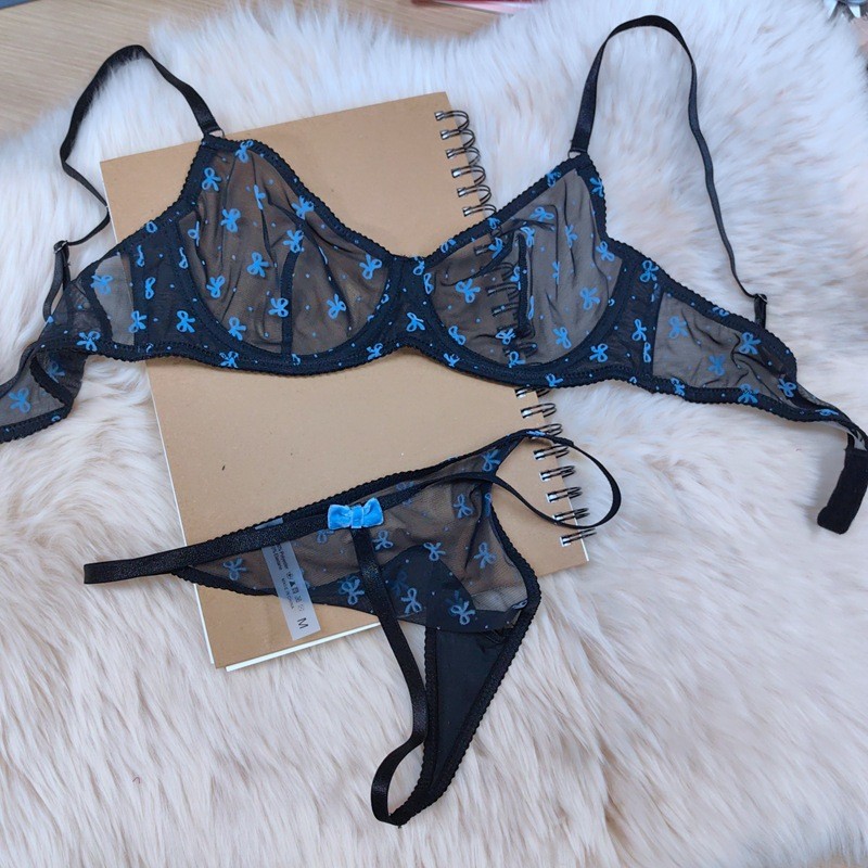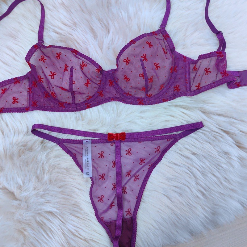 法式蕾丝内衣超薄透视植绒印花网纱情趣内衣性感蝴蝶结少女文胸罩