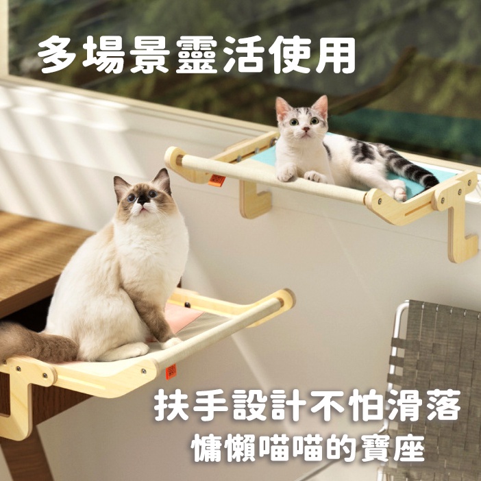 貓掛床免鑽牆 免打洞 免吸盤 床邊 窗邊穩定掛吊床 租屋養貓必備 不破壞房屋直接懸掛式