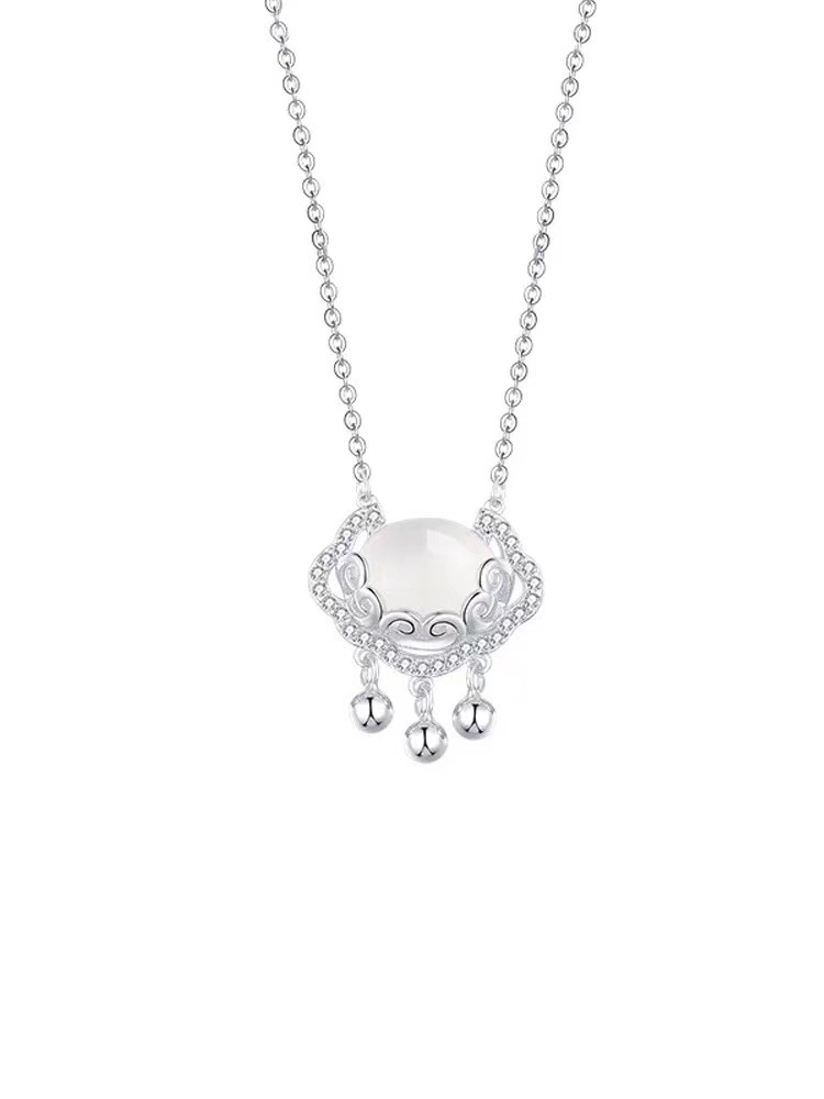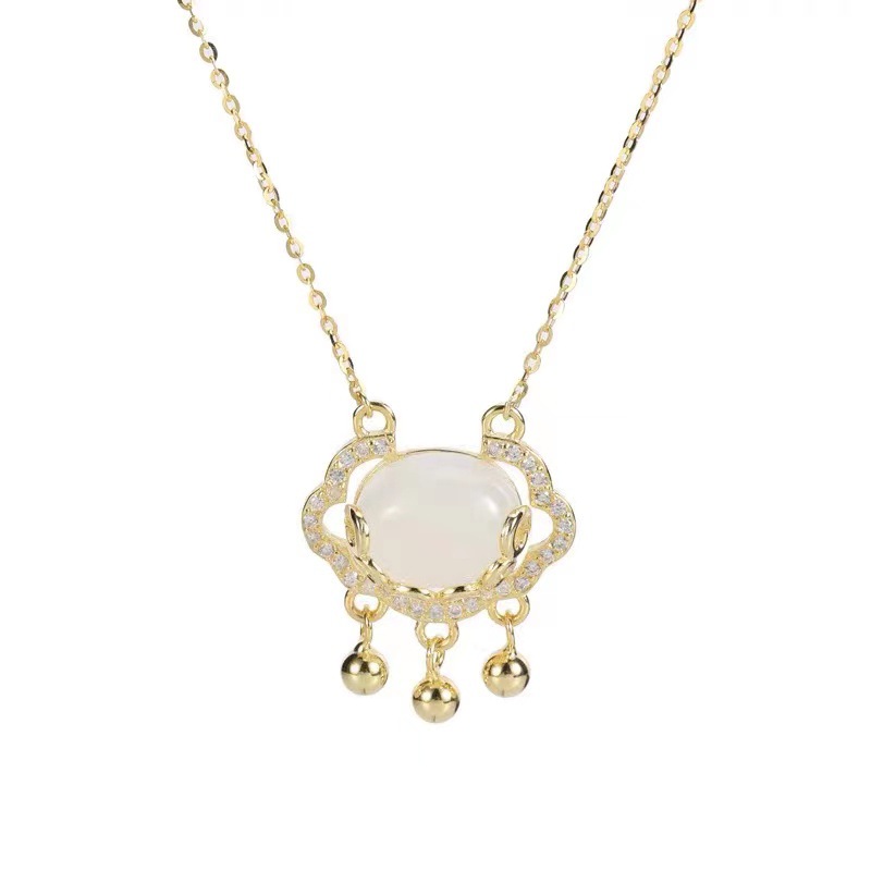 如意祥雲平安鎖輕奢鈴铛石玉髓長命鎖項鏈