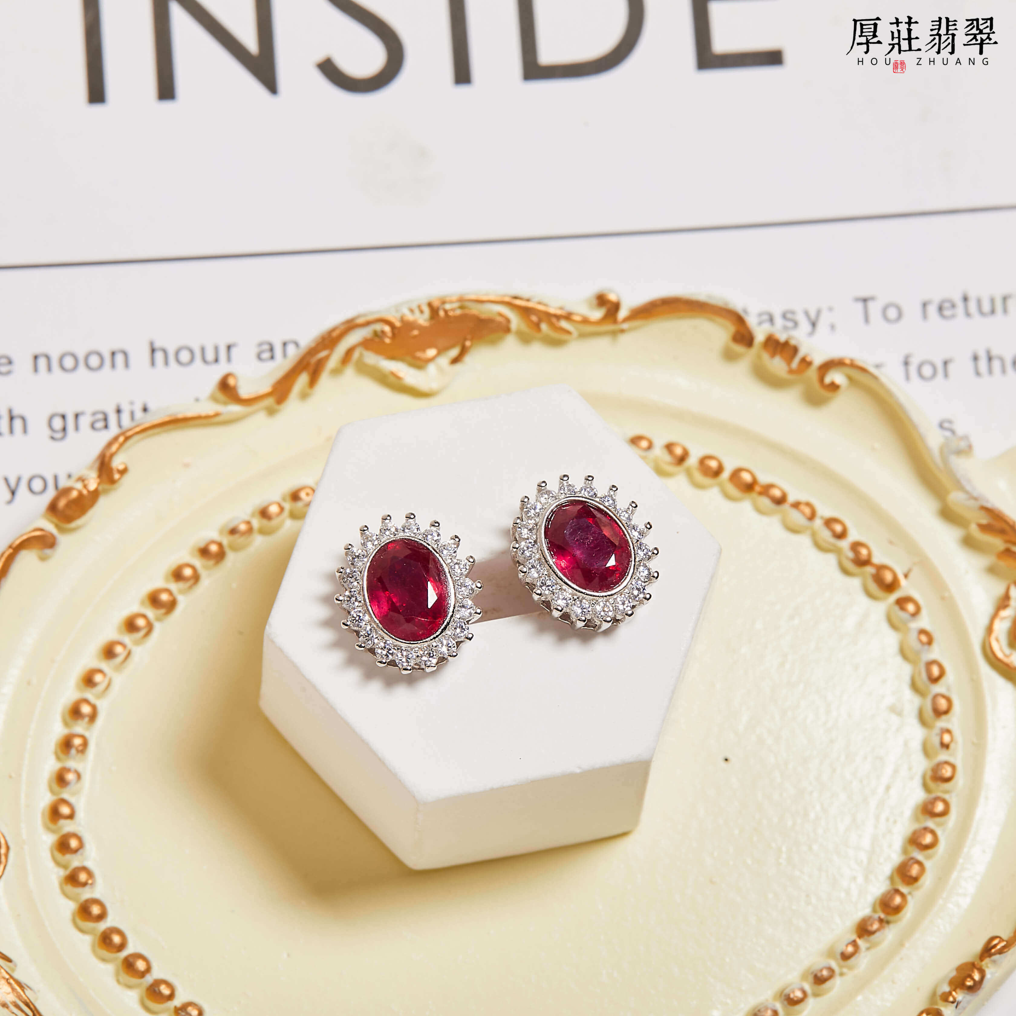 【厚莊翡翠 精選出品】銀鑲紅寶石耳釘