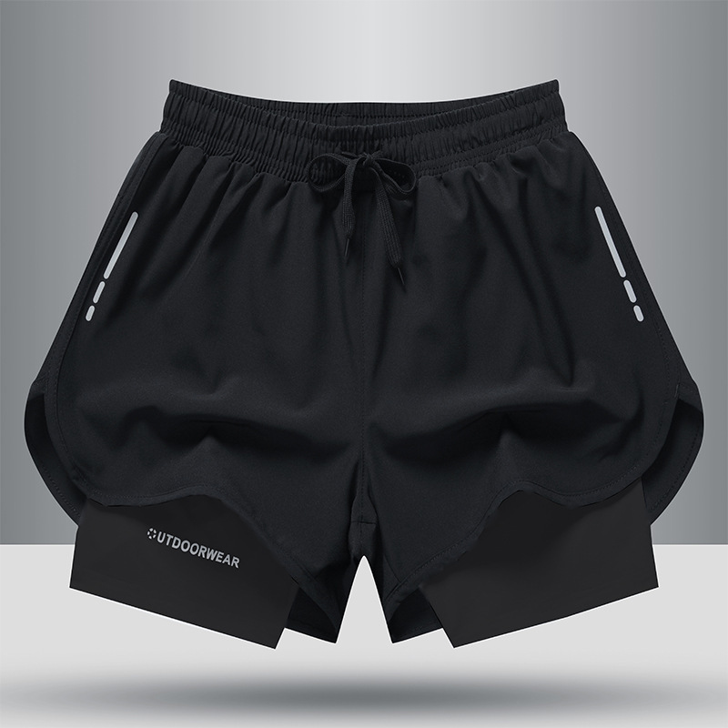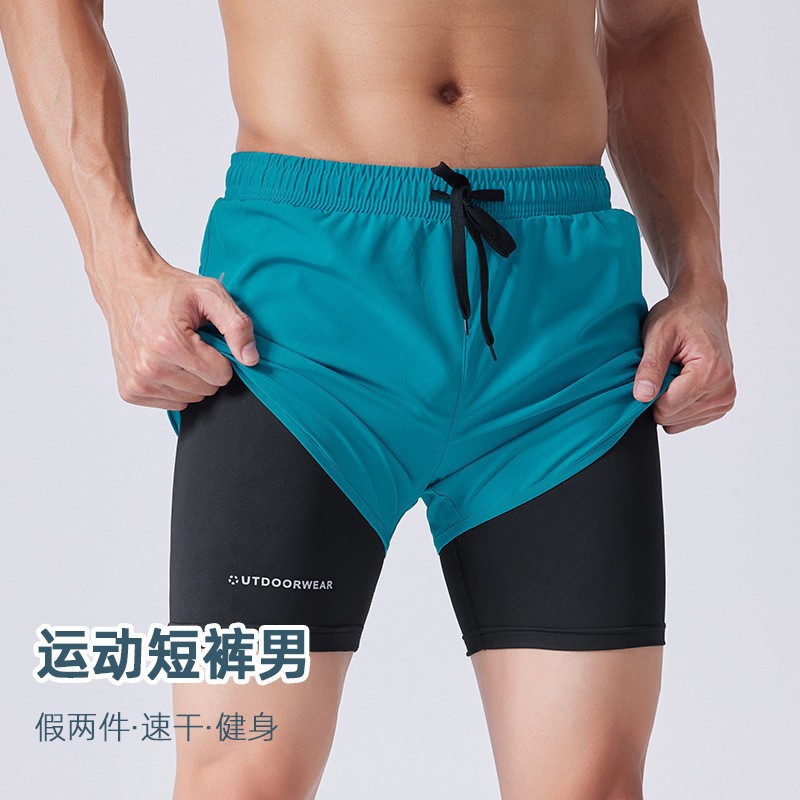 速幹假兩件男士訓練緊身褲健身運動短褲