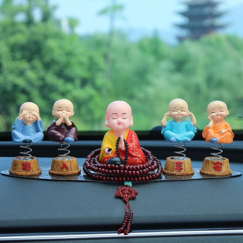 小和尚汽車擺件誦經四不禅意太陽能車載裝飾