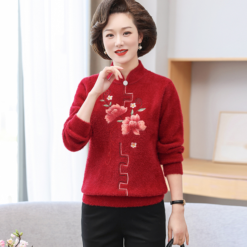 新款冬裝打底衫加厚中年大碼本命年衣服紅色毛衣女