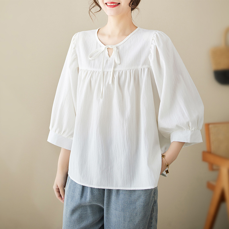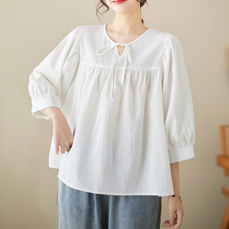 夏季文藝範大碼遮肚顯瘦襯衣女士寬鬆娃娃衫上衣