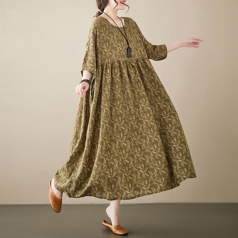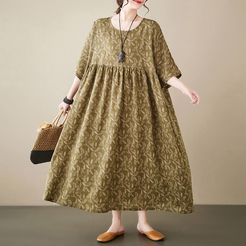 夏季大擺裙森女棉麻連衣裙大碼女裝寬鬆碎花裙長裙子