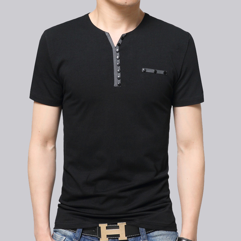 夏季男士短袖男棉T恤男式修身韓版V領半袖T恤衫