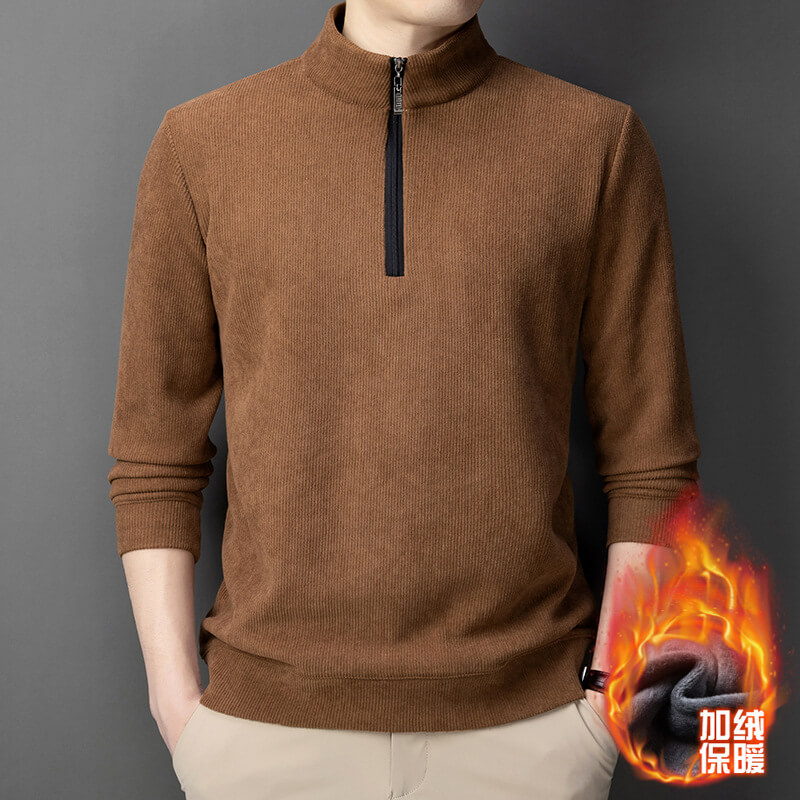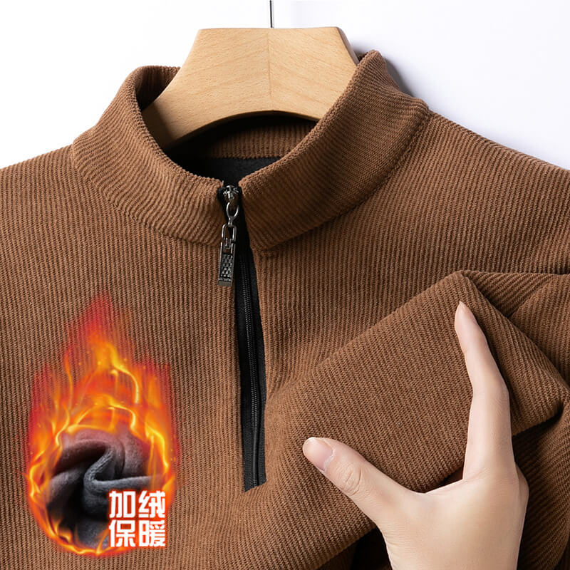 歐棉絨半拉鏈立領衛衣男款加絨加厚男士冬季保暖半高領上衣打底衫