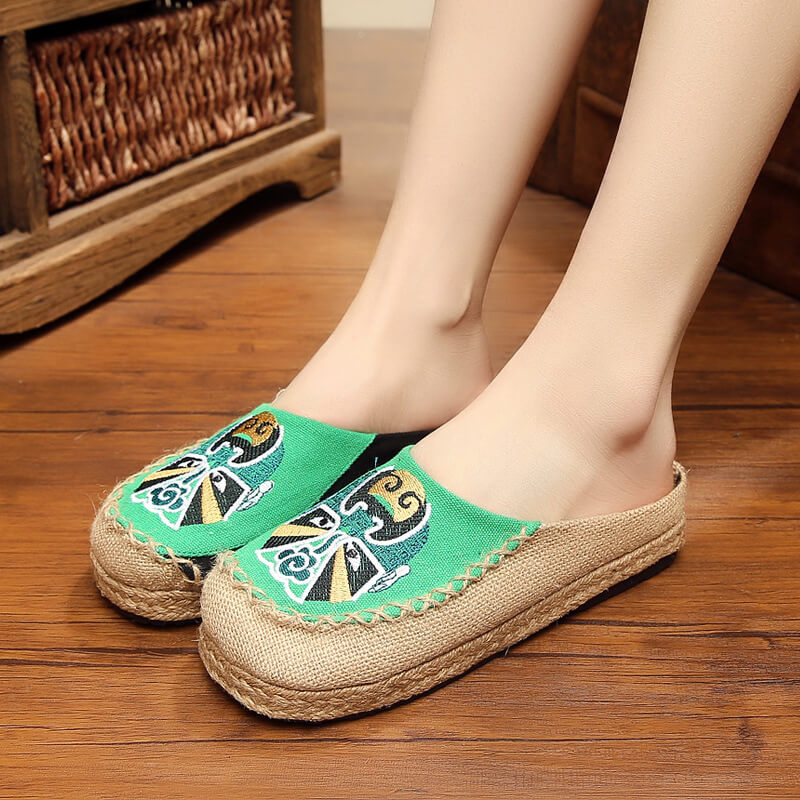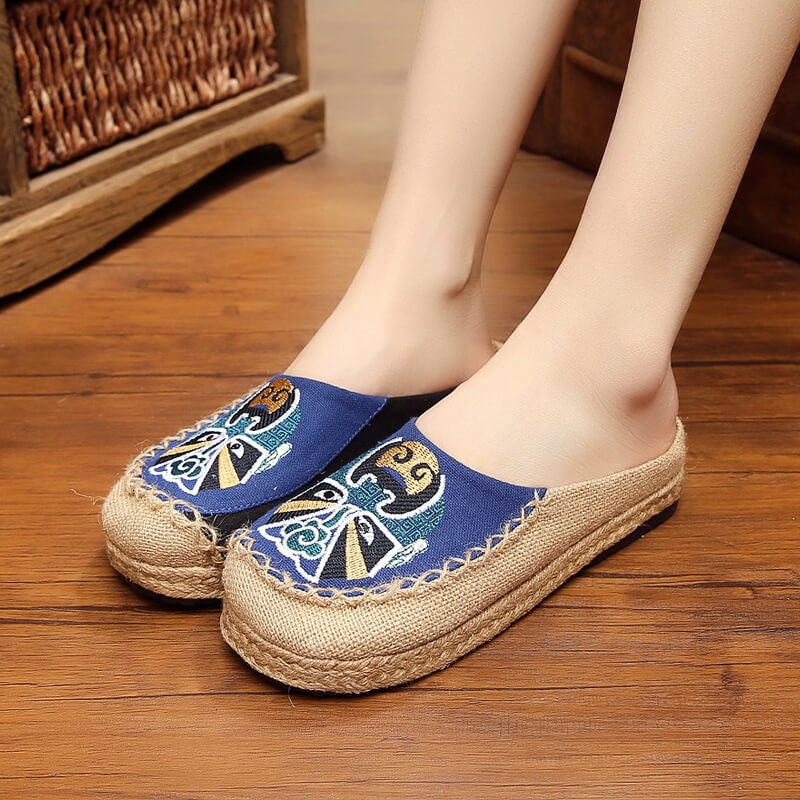 泰古羋麻京劇臉譜繡花大頭鞋泰國手工布鞋刺繡亞麻草編文藝森女系