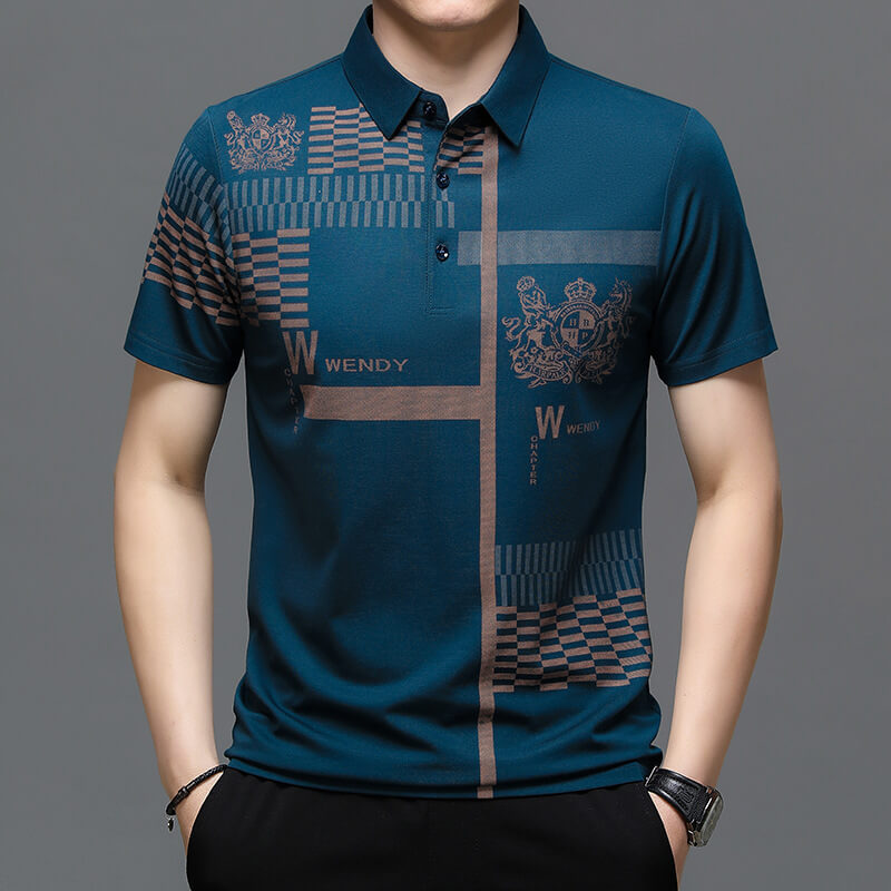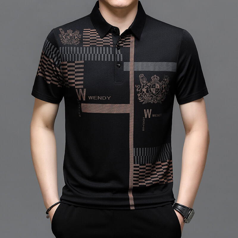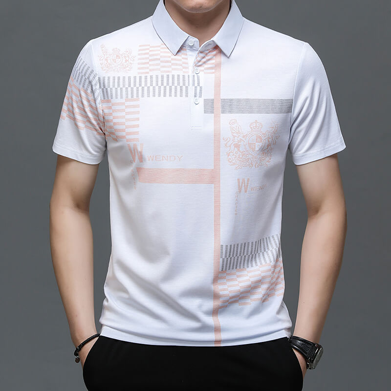 夏裝男士短袖t恤翻領打底衫上衣印花商務休閑男Polo衫