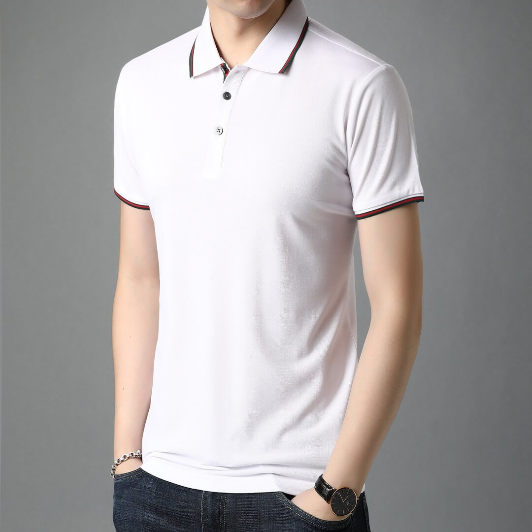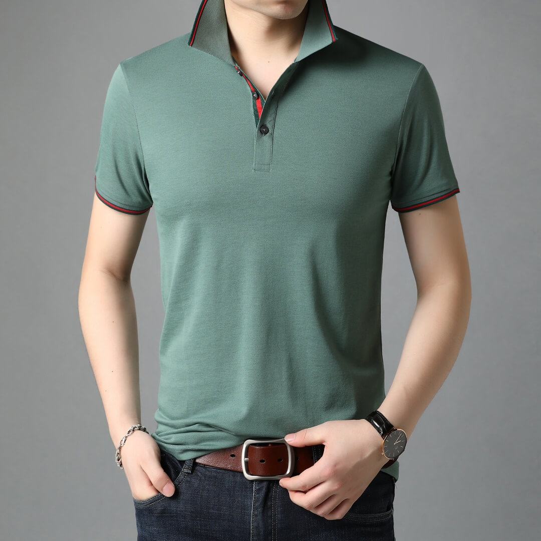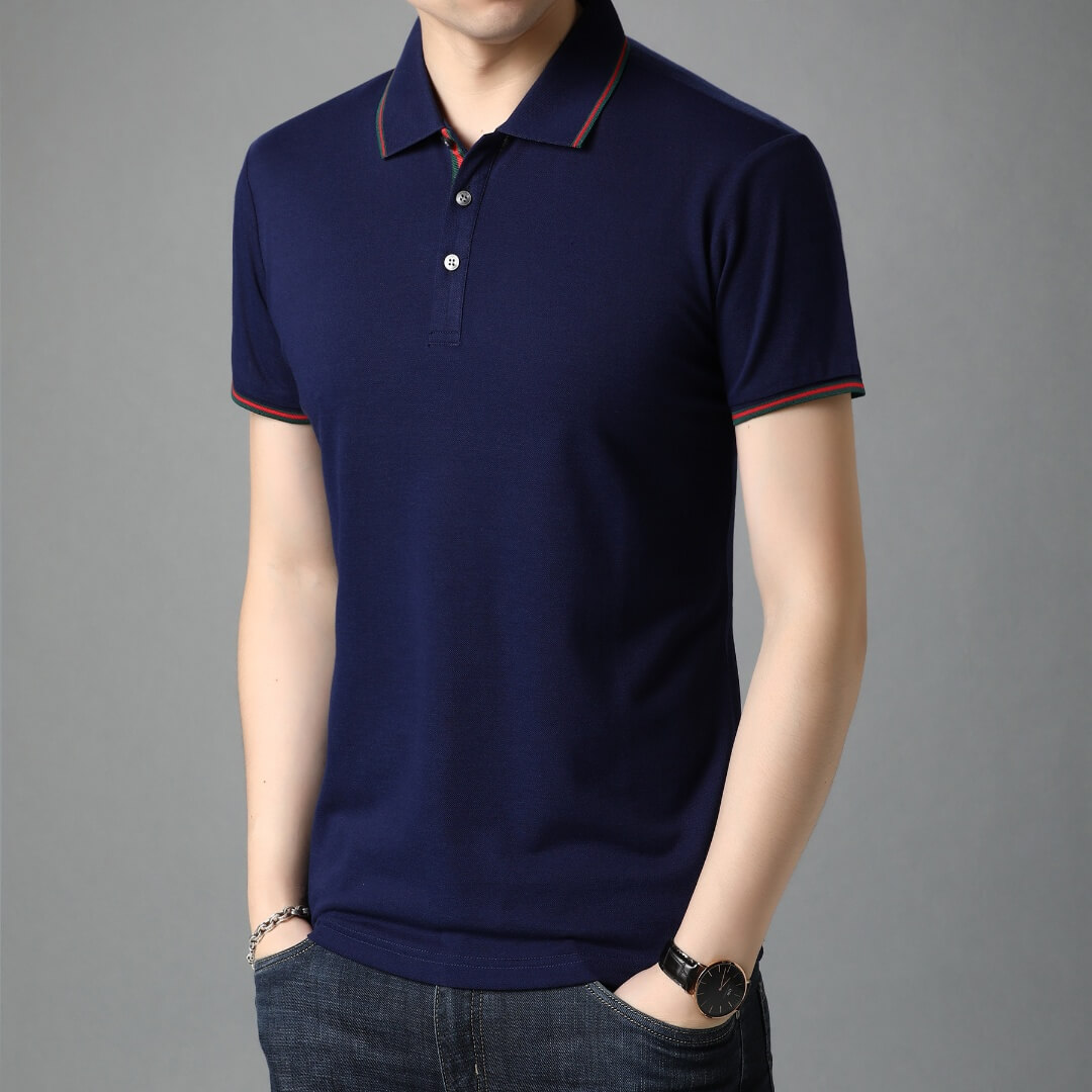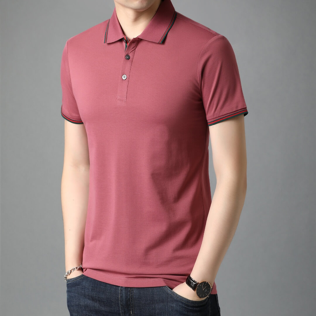 簡約絲光棉POLO領純色短袖T恤