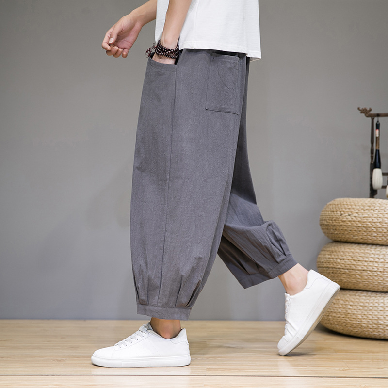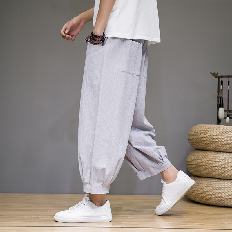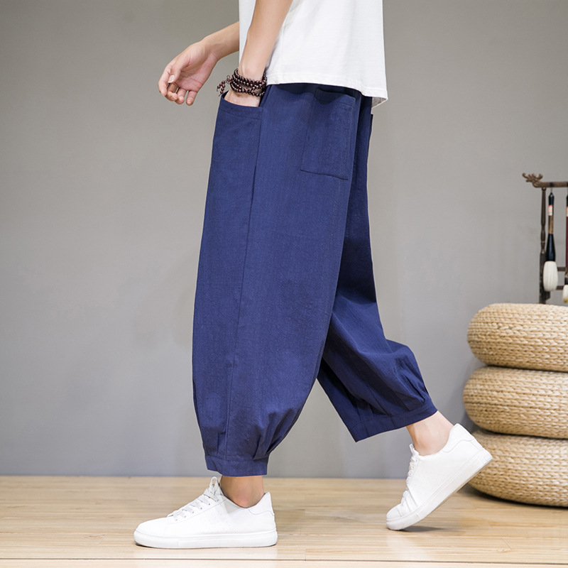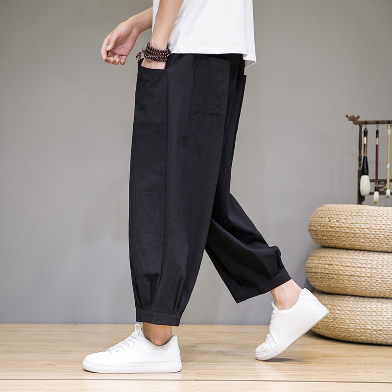 春夏新款國風亞麻褲日系哈倫燈籠褲大碼蘿蔔褲