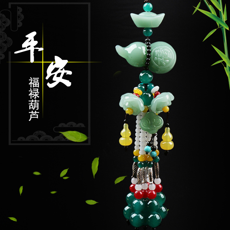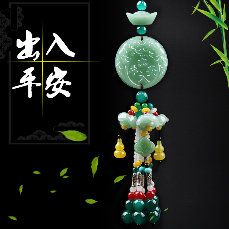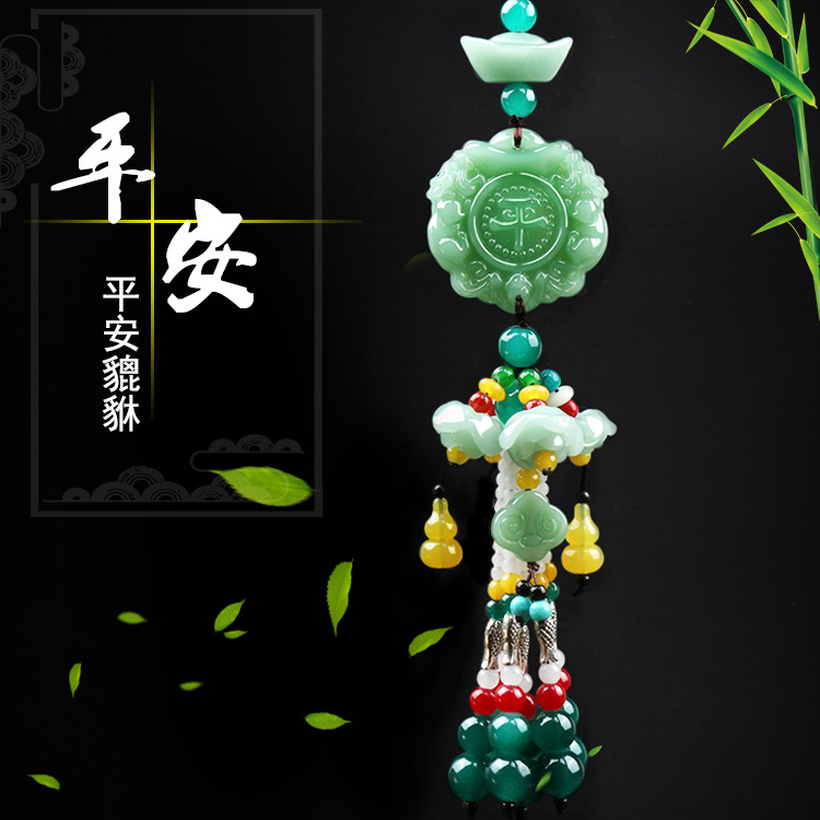 車飾綠玉色創意蓮花車掛出入平安貔貅葫蘆汽車掛件