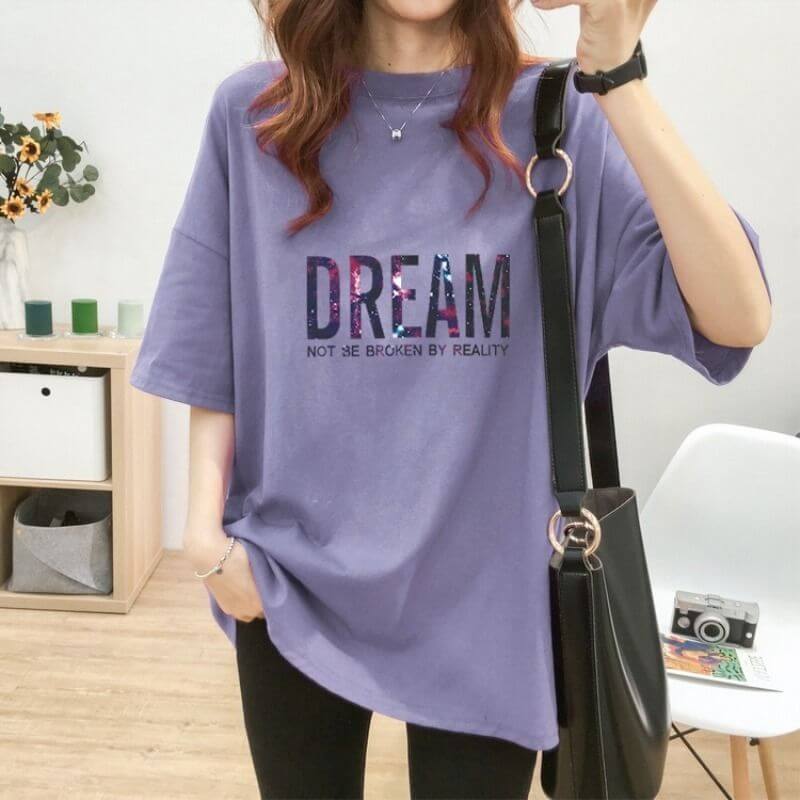 時尚韓版字母圖案印花舒適棉質T恤上衣