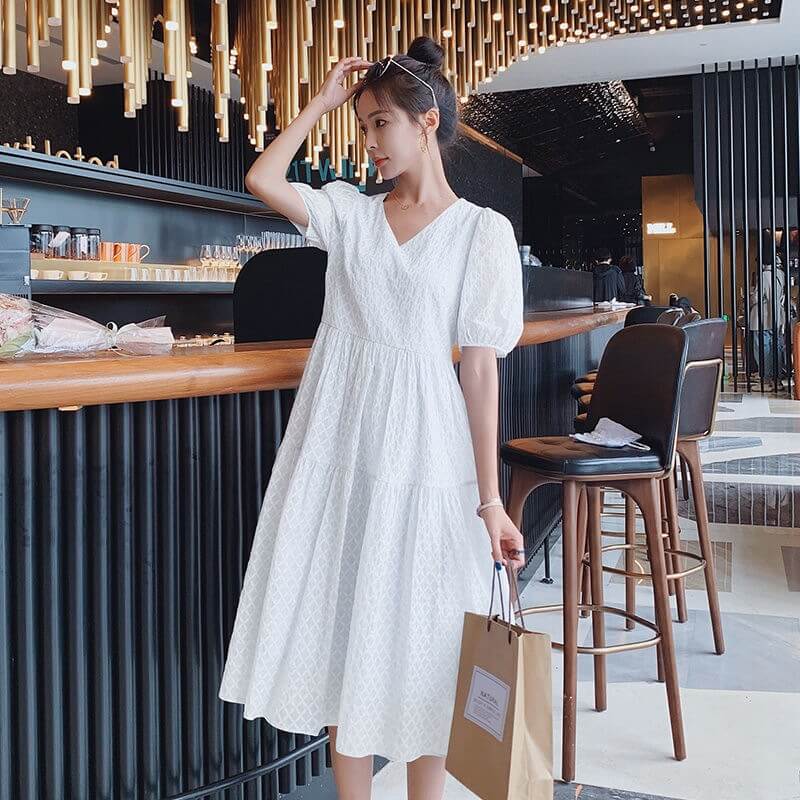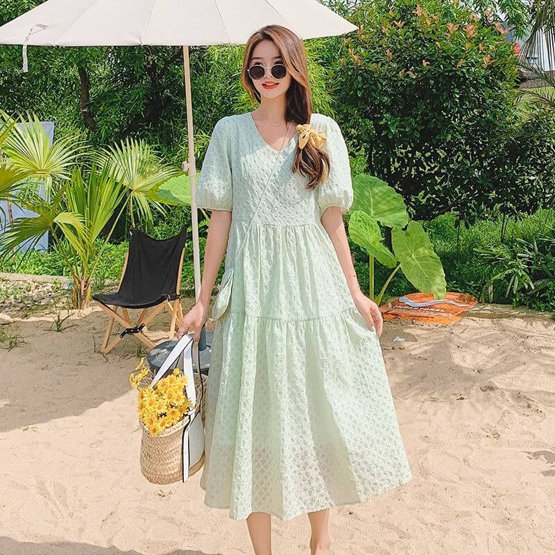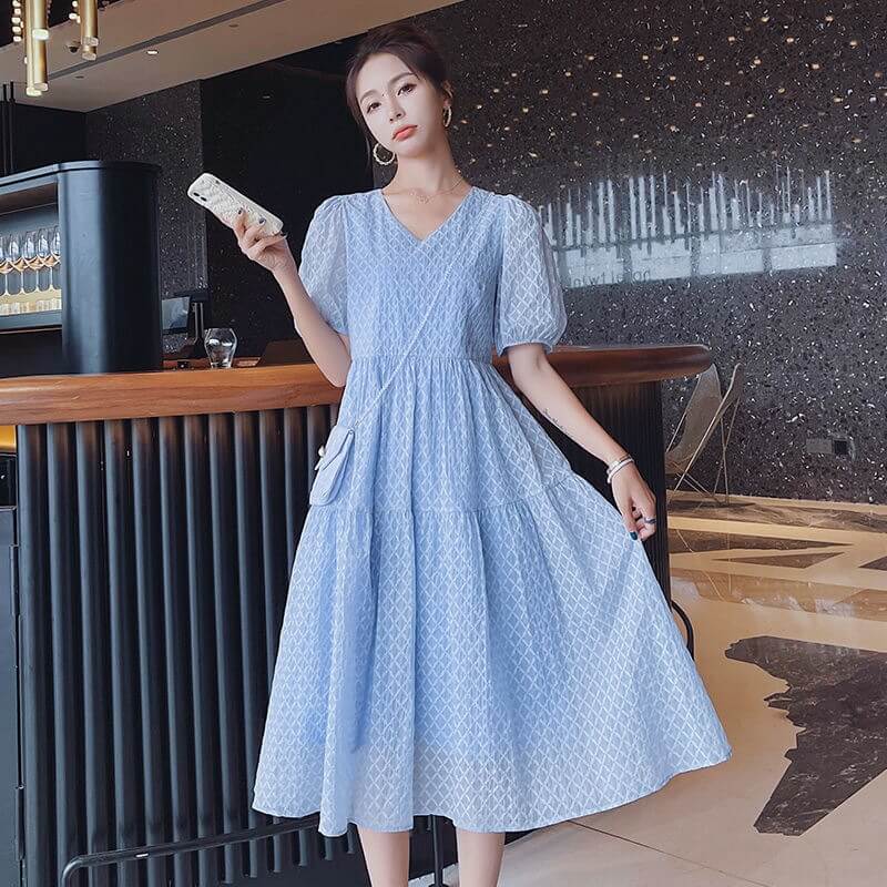 新款法式藍色初戀連衣裙女夏寬松顯瘦溫柔風小個子a字公主裙