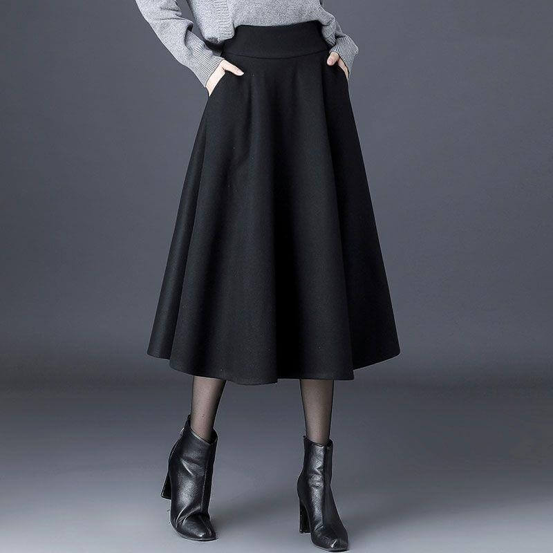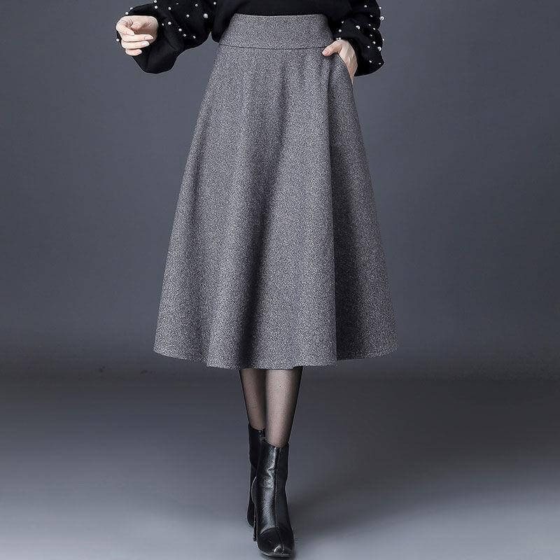 氣質韓版a字半身裙秋冬季女裝新款顯瘦中長裙高腰呢子大擺傘裙