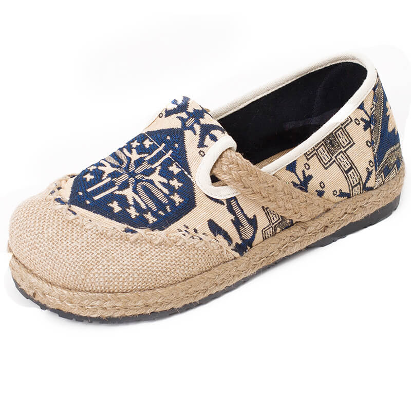 新款圓頭棉麻民族風布鞋女漢服鞋古風平跟鞋