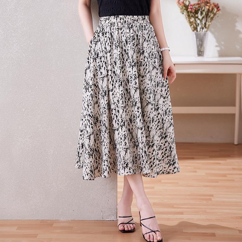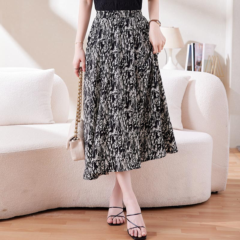 印花雪紡半身裙女新款時尚中年媽媽洋氣長裙小碎花裙子