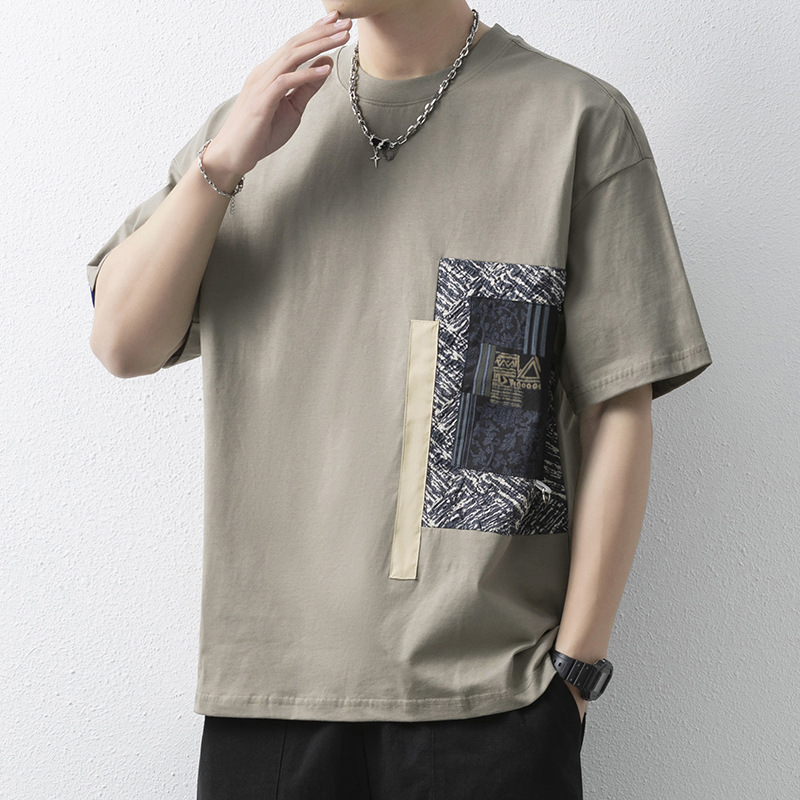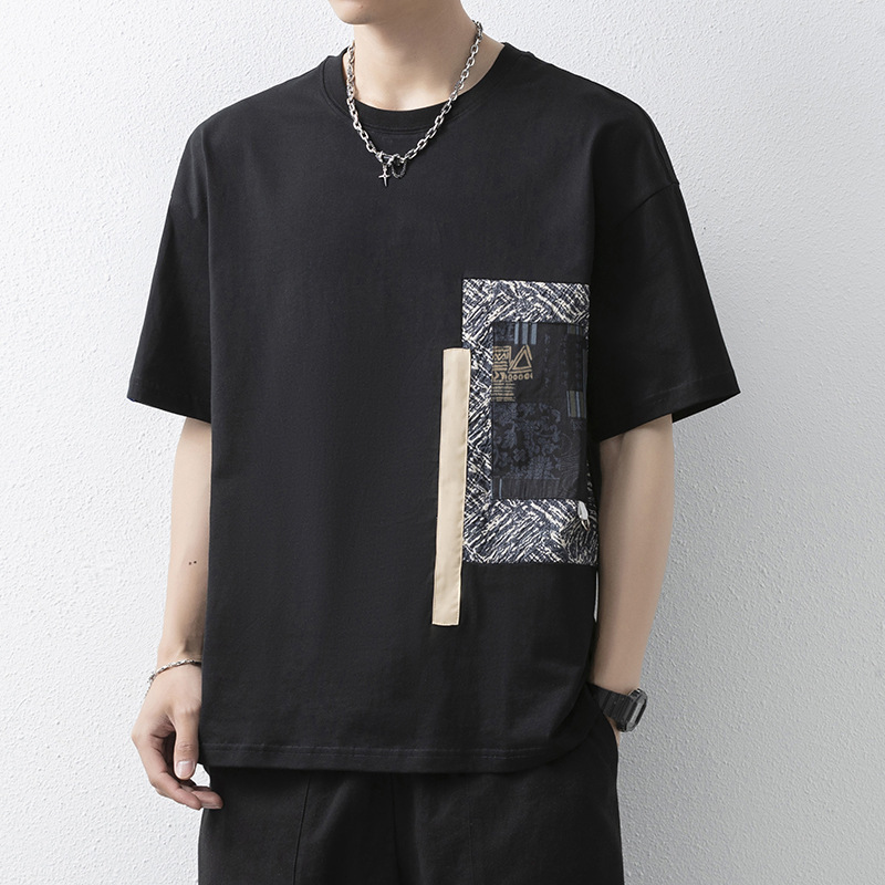 夏季嘻哈圓領短袖T恤男士日系寬鬆青年休閒半袖T恤