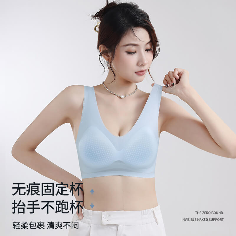 【透氣網孔】新款超薄冰絲無痕內衣!涼感薄紗舒適透氣聚攏果凍條軟支撐無鋼圈背心式美背文胸!