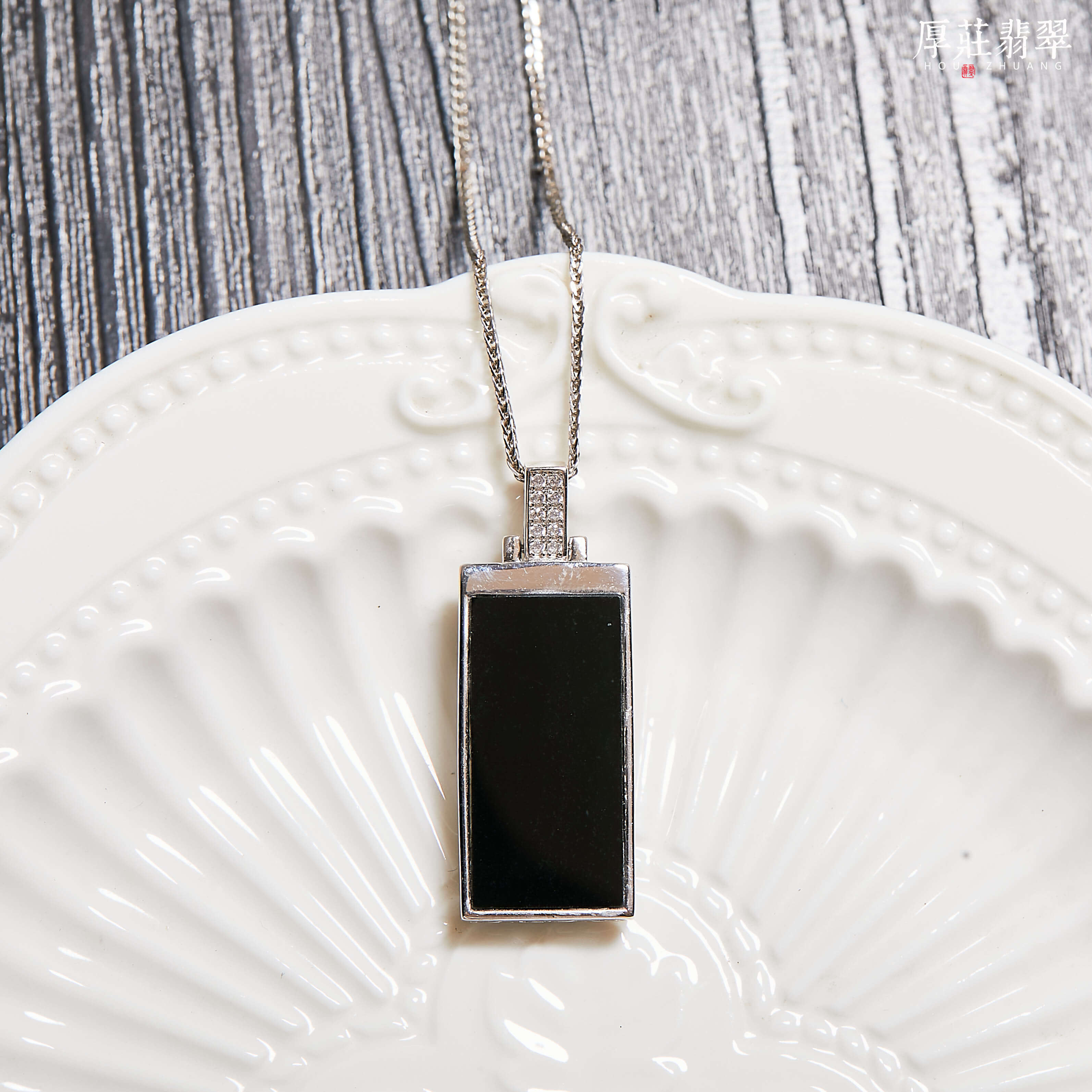 【厚莊翡翠 精選出品】銀鑲墨翠無事牌吊墜