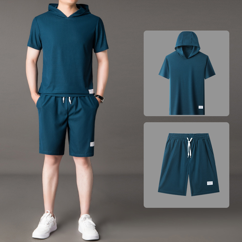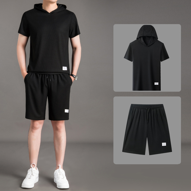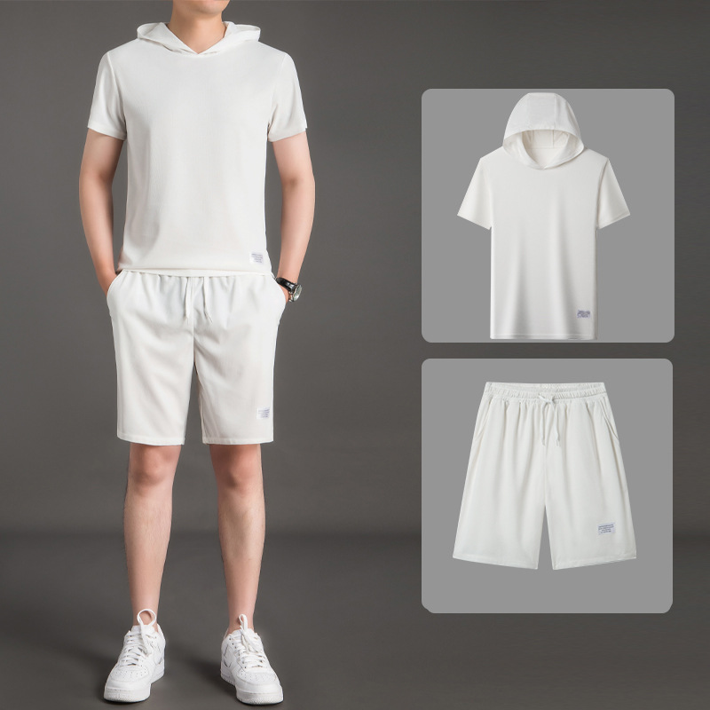 夏季新款短袖t恤套裝男士連帽休閒運動套裝
