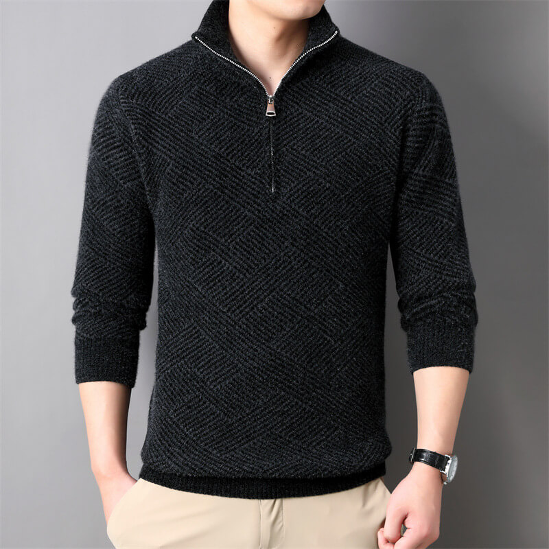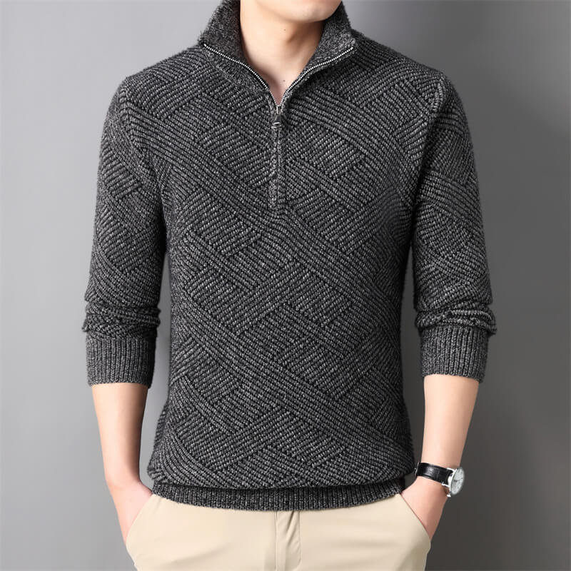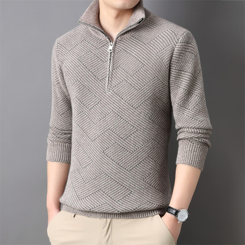 秋冬新款高領毛衣男士拉鏈翻領寬松百搭日系純色打底針織衫線衣