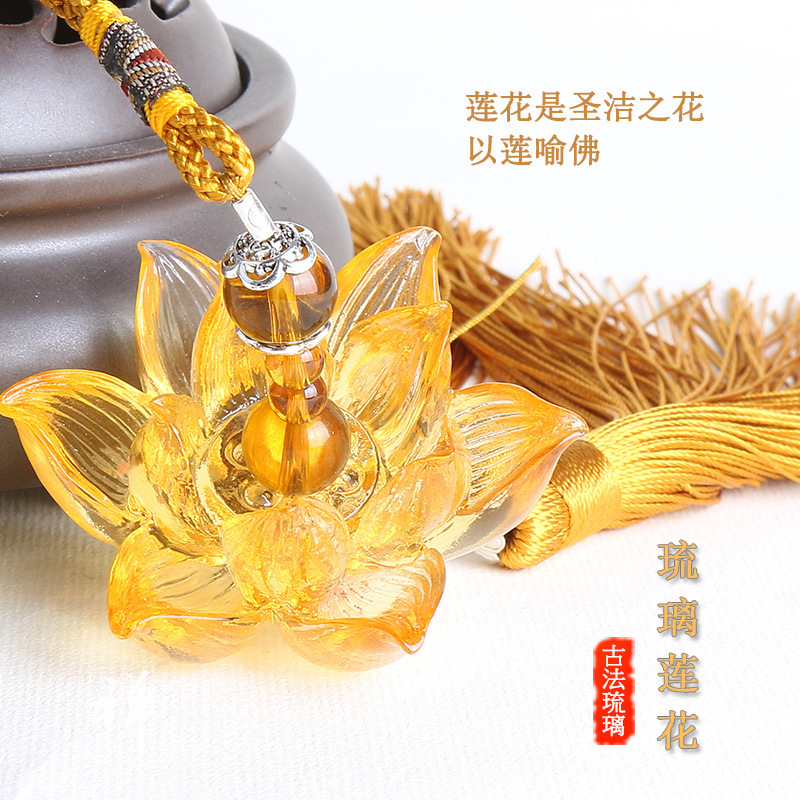 蓮花掛件汽車飾品車載掛件古法琉璃立體荷花