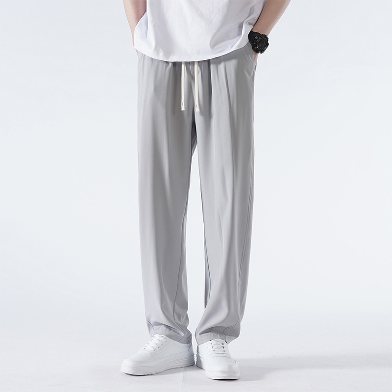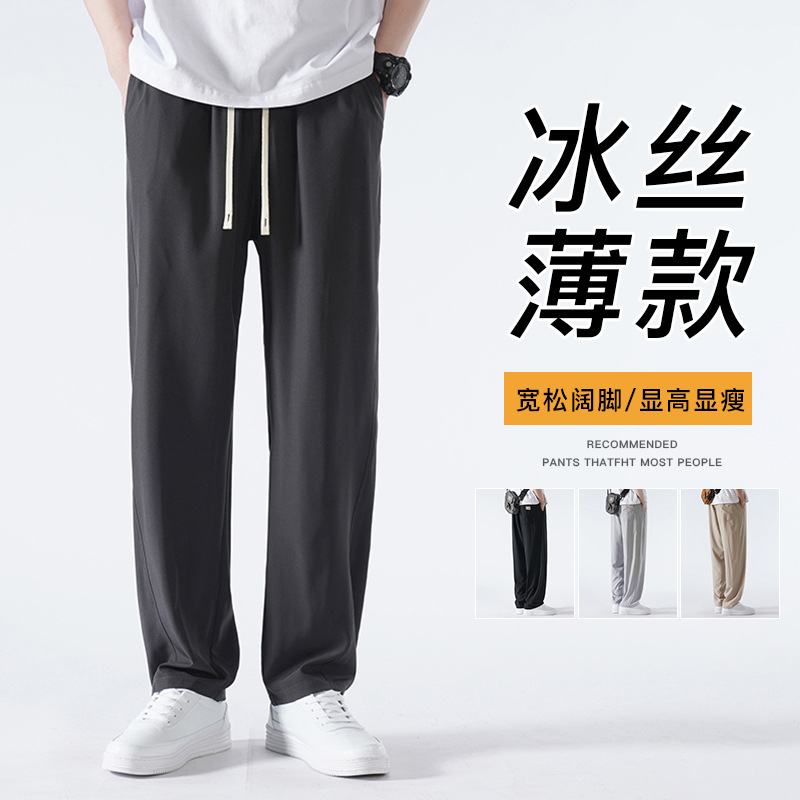 夏季薄款寬松直筒褲垂感男裝速幹運動褲闊腿休閑長褲