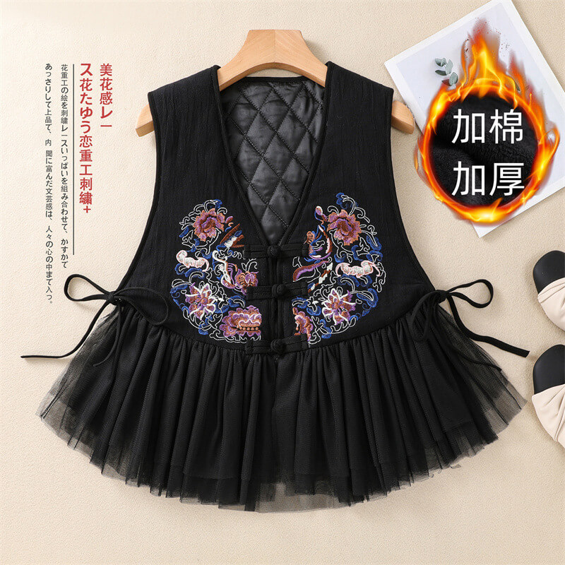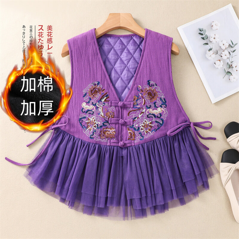 冬季民族風棉麻繡花加棉加厚馬甲外套短外搭無袖馬夾坎肩上衣