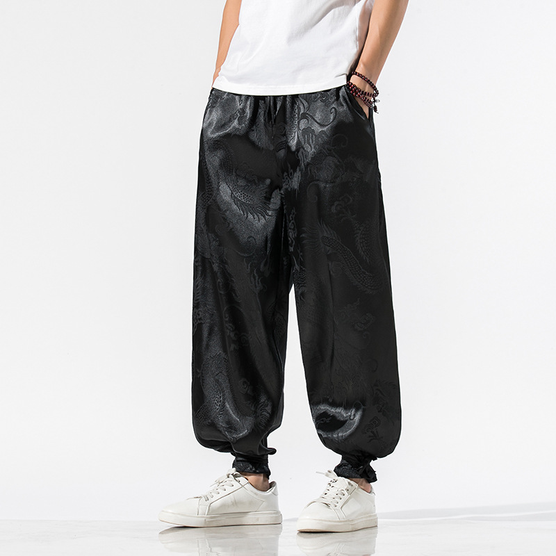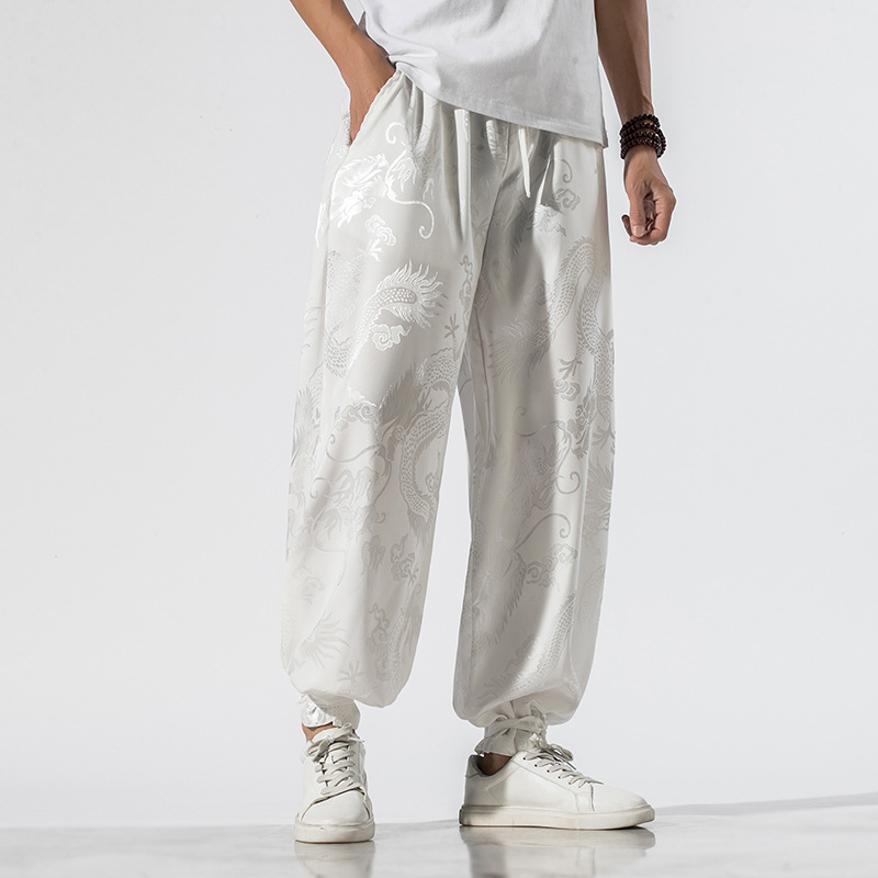 國風龍紋唐裝褲子男款夏季國潮設計感冰絲束腳褲民族風大碼男褲