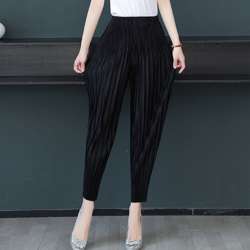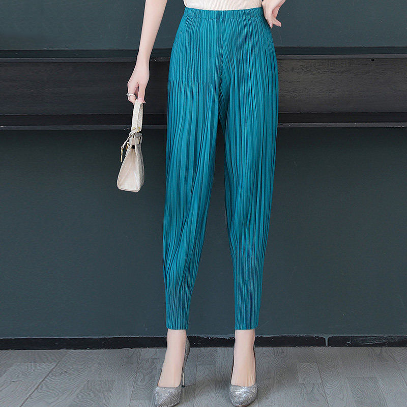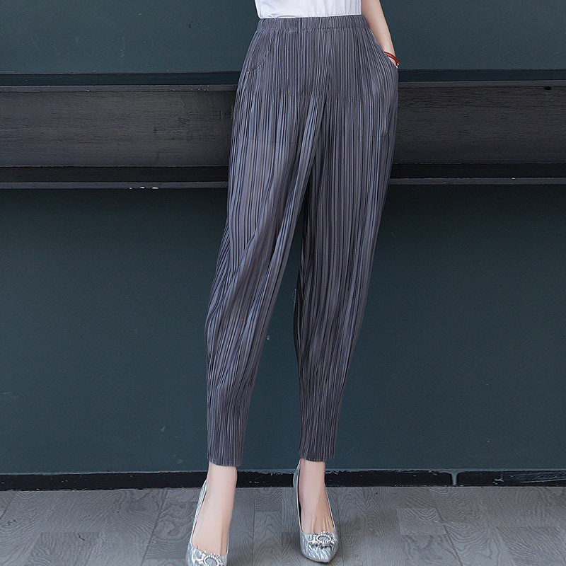 寬鬆文藝系列-薄款三宅一生同款顯瘦褶皺九分休閒褲